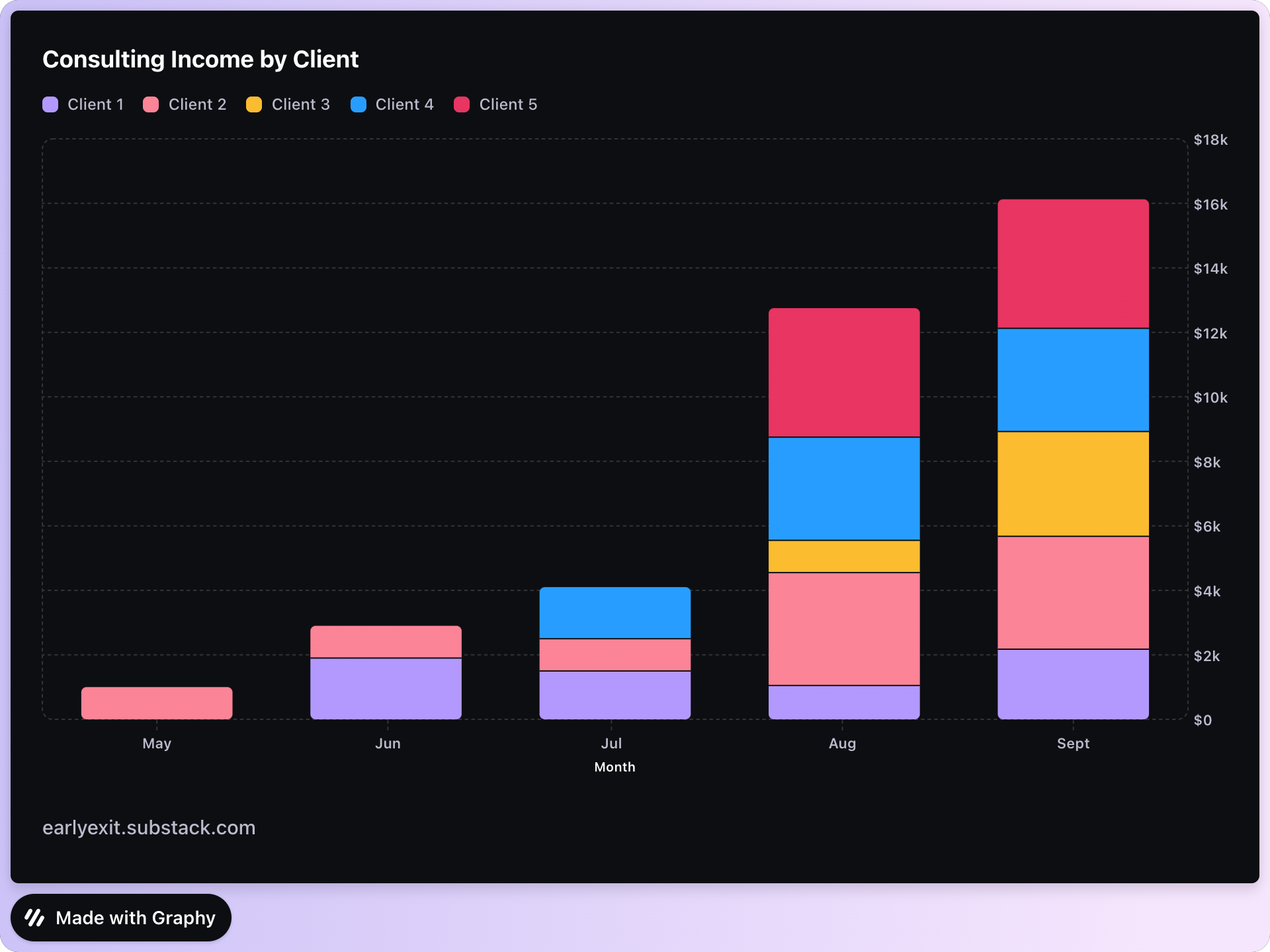 At the start of September I had 5 consulting clients paying an average of $3.2k/month for a total of $16,000.