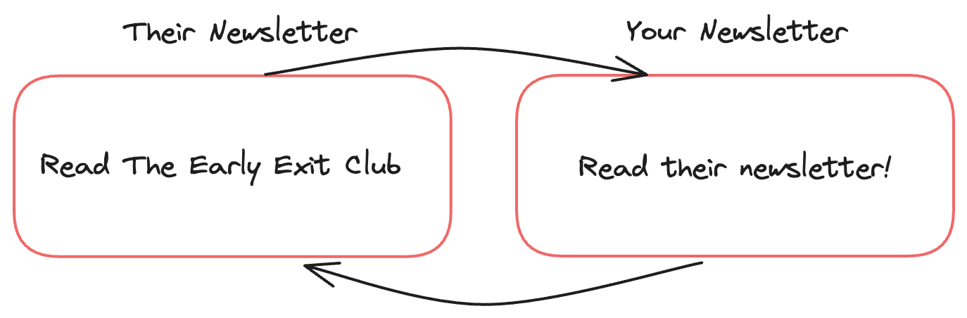 This is an alternative to newsletter ads where you freely promote another newsletter in your own.
