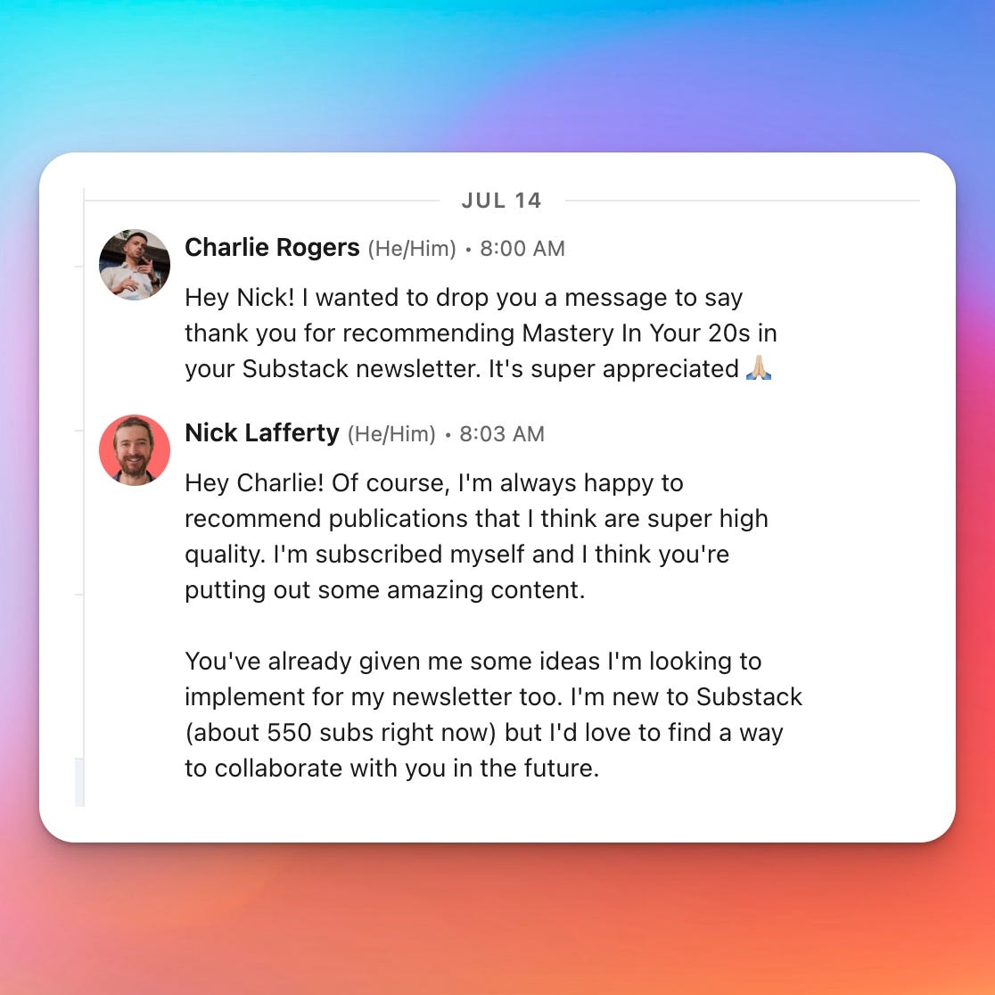 That one post jumpstarted my newsletter journey faster than anything else I could’ve done and gave me a ton of confidence and momentum. I had a good idea, now I just needed to stick with it.
