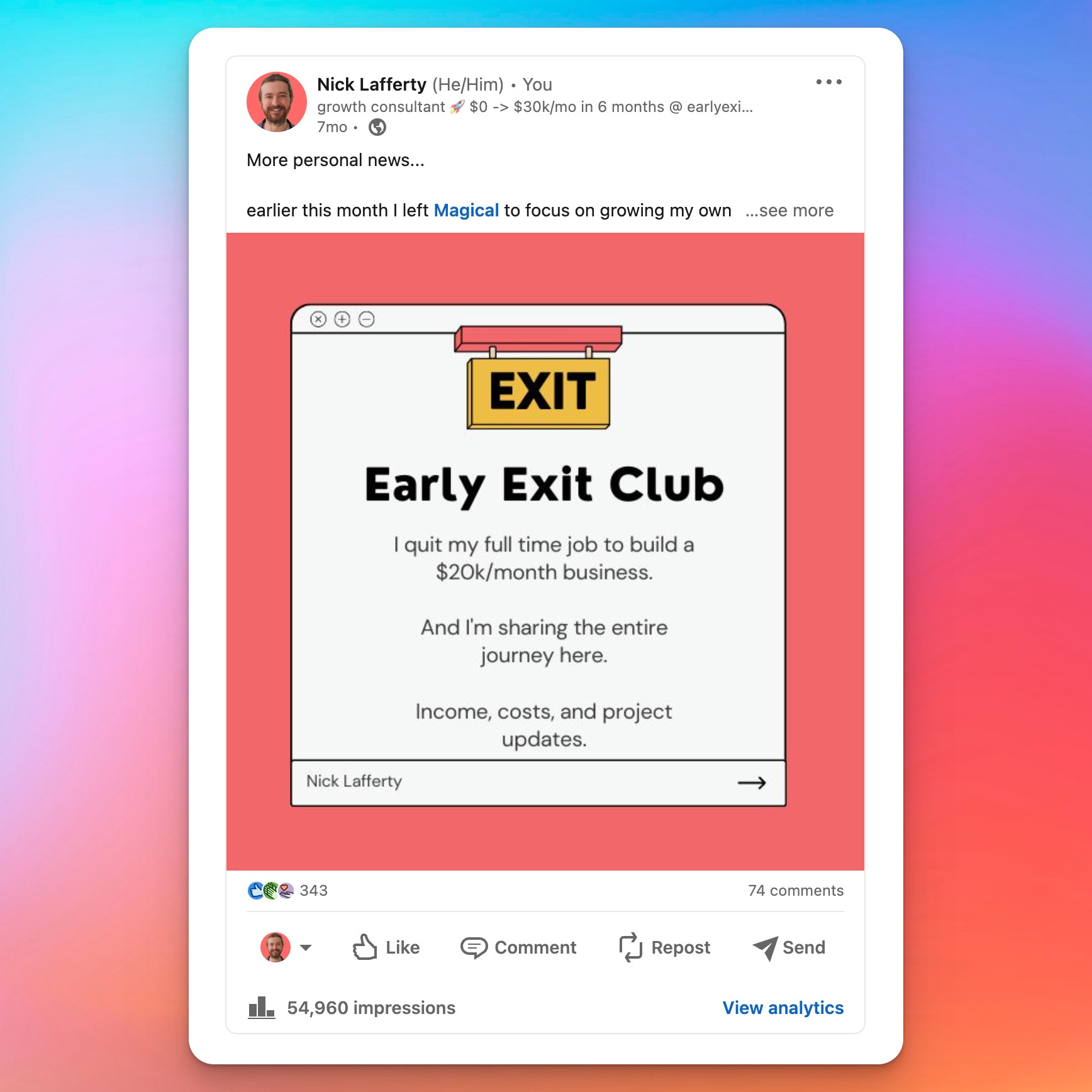 I have an established audience of ~7,000 people there made up of friends and former colleagues (Don’t let this discourage you from starting! I simply leveraged the work I’d been putting in for years.)