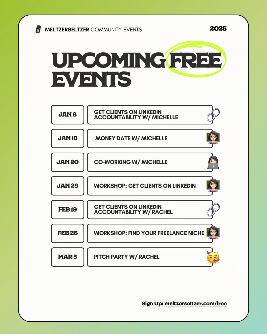 Rachel Meltzer runs Pop Club — a community for current and aspiring freelance writers. She also runs amazing free programs to help you find more clients and get your money right.