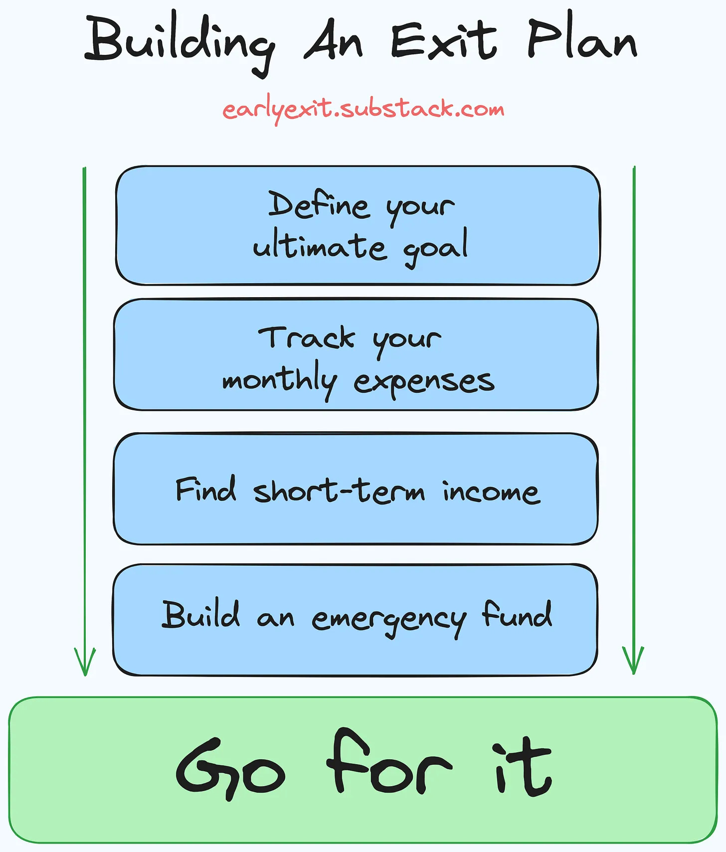 The below graphic is from one of my earliest newsletters about building your exit plan. I wrote this 2 months after quitting my job when I wasn’t even making enough money to cover my living expenses.