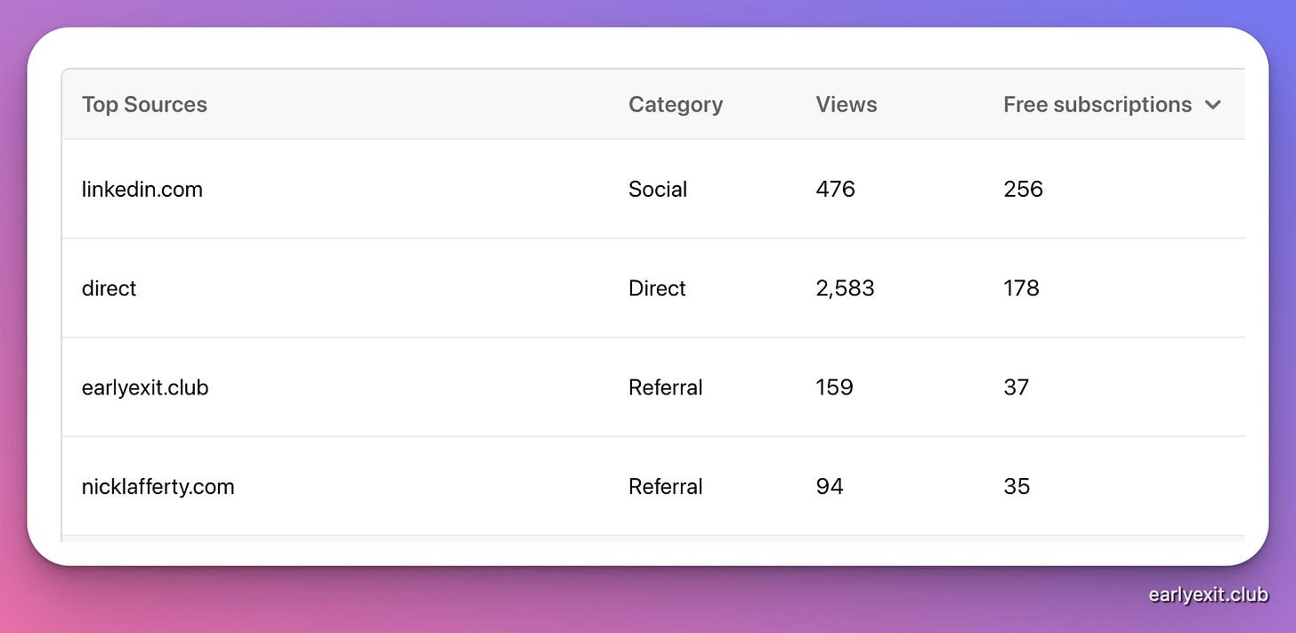 I somehow attracted over 6,000 followers and they showed up big when I announced this newsletter: LinkedIn is my largest source of subscribers.