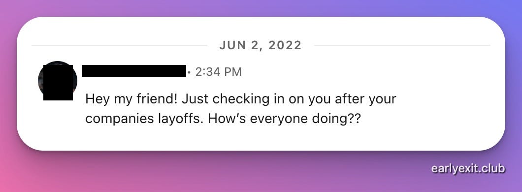 We exchanged a few Looms back and forth and then a month later he kindly reached out after Loom went through their first round of layoffs to see how I was doing.