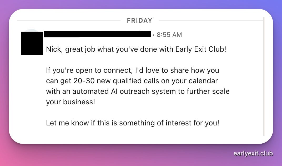 You’re part of the Early Exit Club — a community for growing solopreneurs by Nick Lafferty.